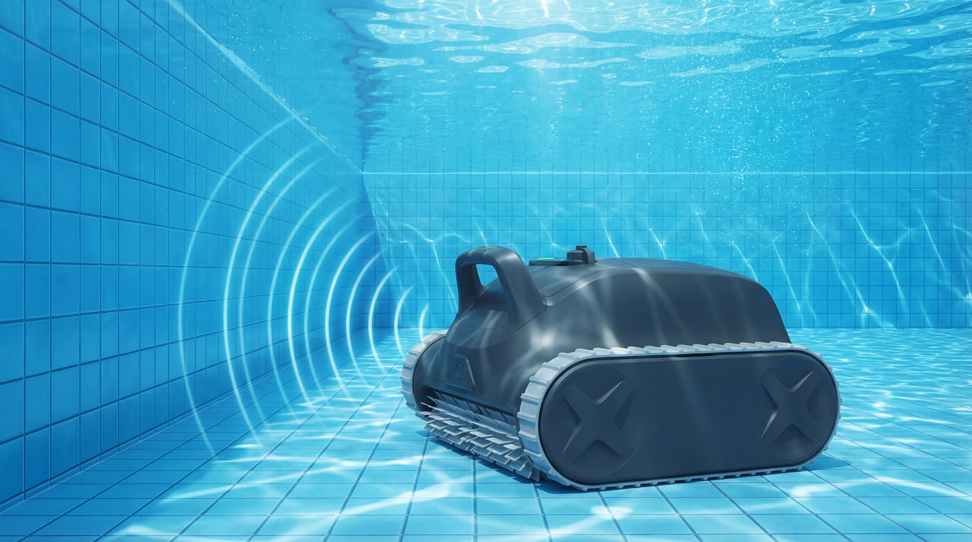 Il sistema intelligente del BWT ES Echo utilizza sensori sonar ed il giroscopio per rilevare la forma della piscina e calcolare i percorsi più efficaci, evitando ostacoli e massimizzando la copertura.