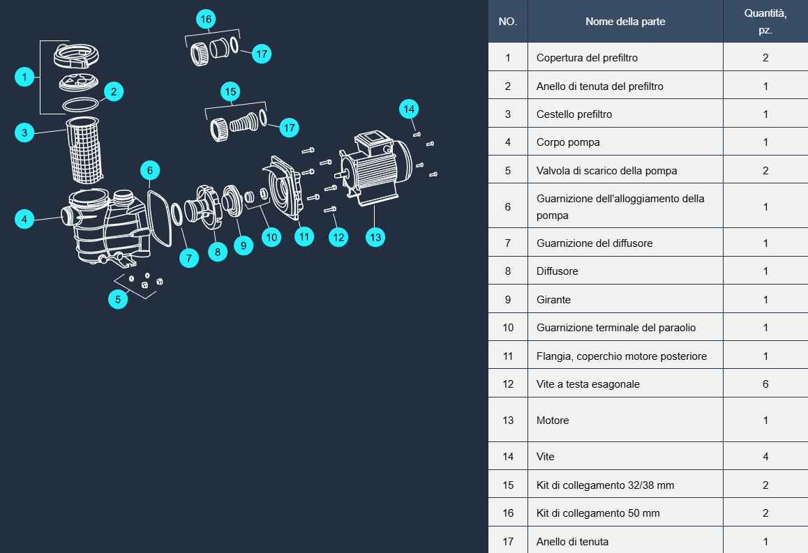- Specifiche del motore: Classe F, IP55, 50Hz, 2 poli