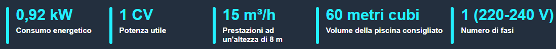 Caratteristiche Tecniche Pompa da 1 CV - 15 M3/h:
