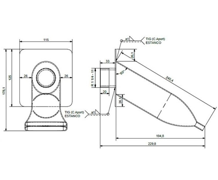 Cannone da parete in acciaio inossidabile A-316L (qualità marina)