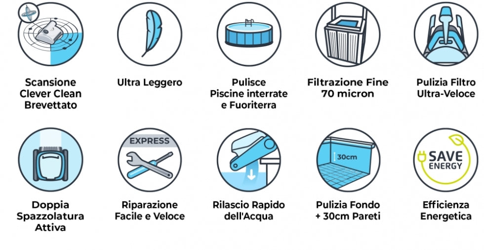 compatibili con Dolphin SX10 Digital - Robot Elettrico Pulitore per Piscina Interrata & Fuoriterra fino a 8 Mt - FONDO + 30 CM PARETI - MY2025