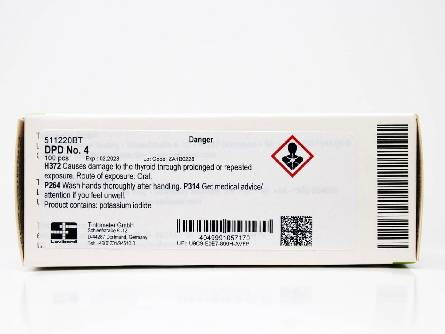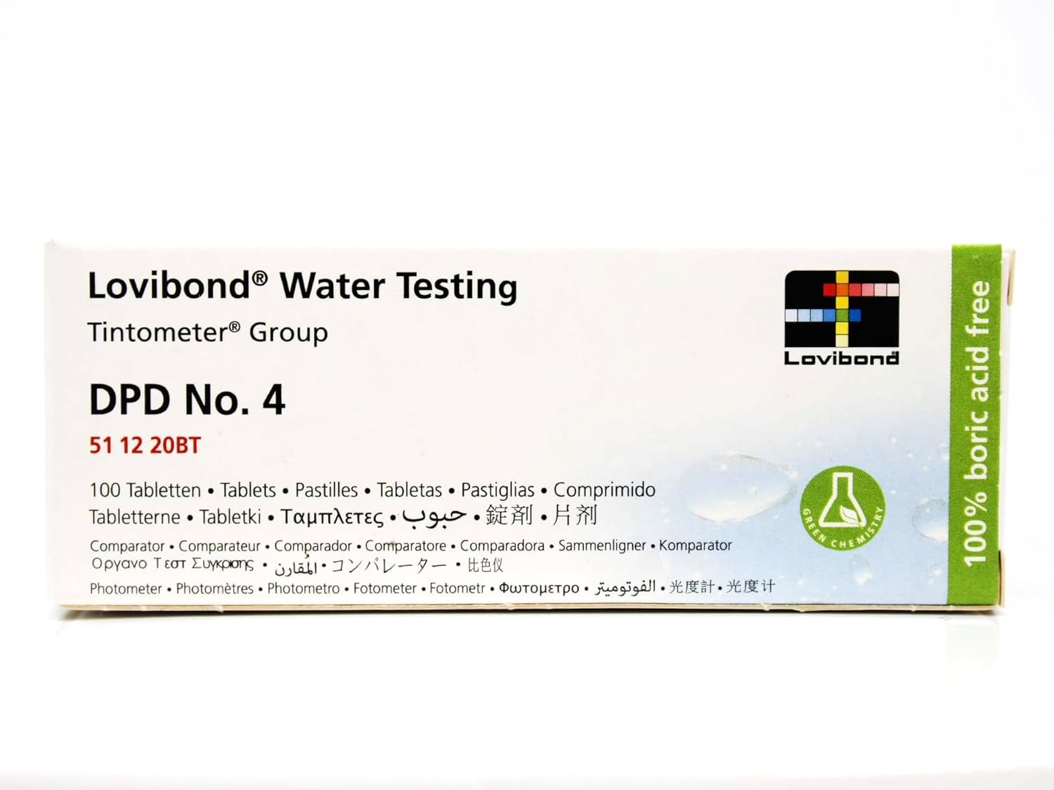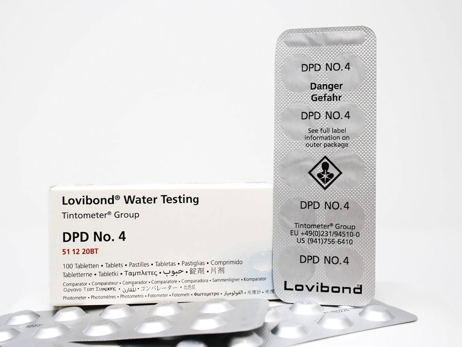 100 Pastiglie Reagenti DPD4 Lovibond per Misurazione Cloro Totale o dell Ozono per Fotometro Elettronico Scuba / MD / PM600 / Multidirect